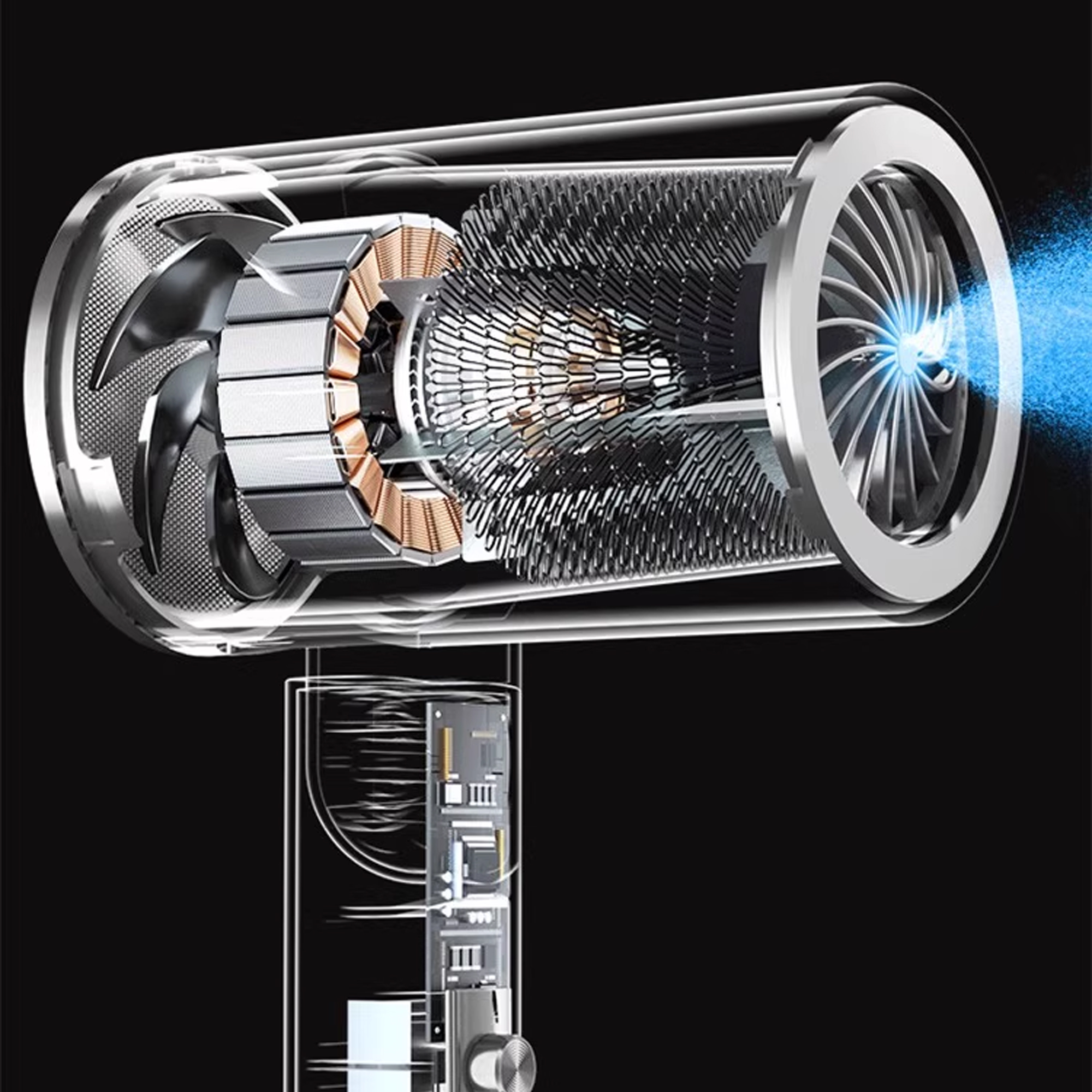 Nourishes and repairs the hair, leaving it smooth and shiny without frizz. Moreover, the double-layer filter design also solves the problem of hair suction by the rear net and reduces broken hair.