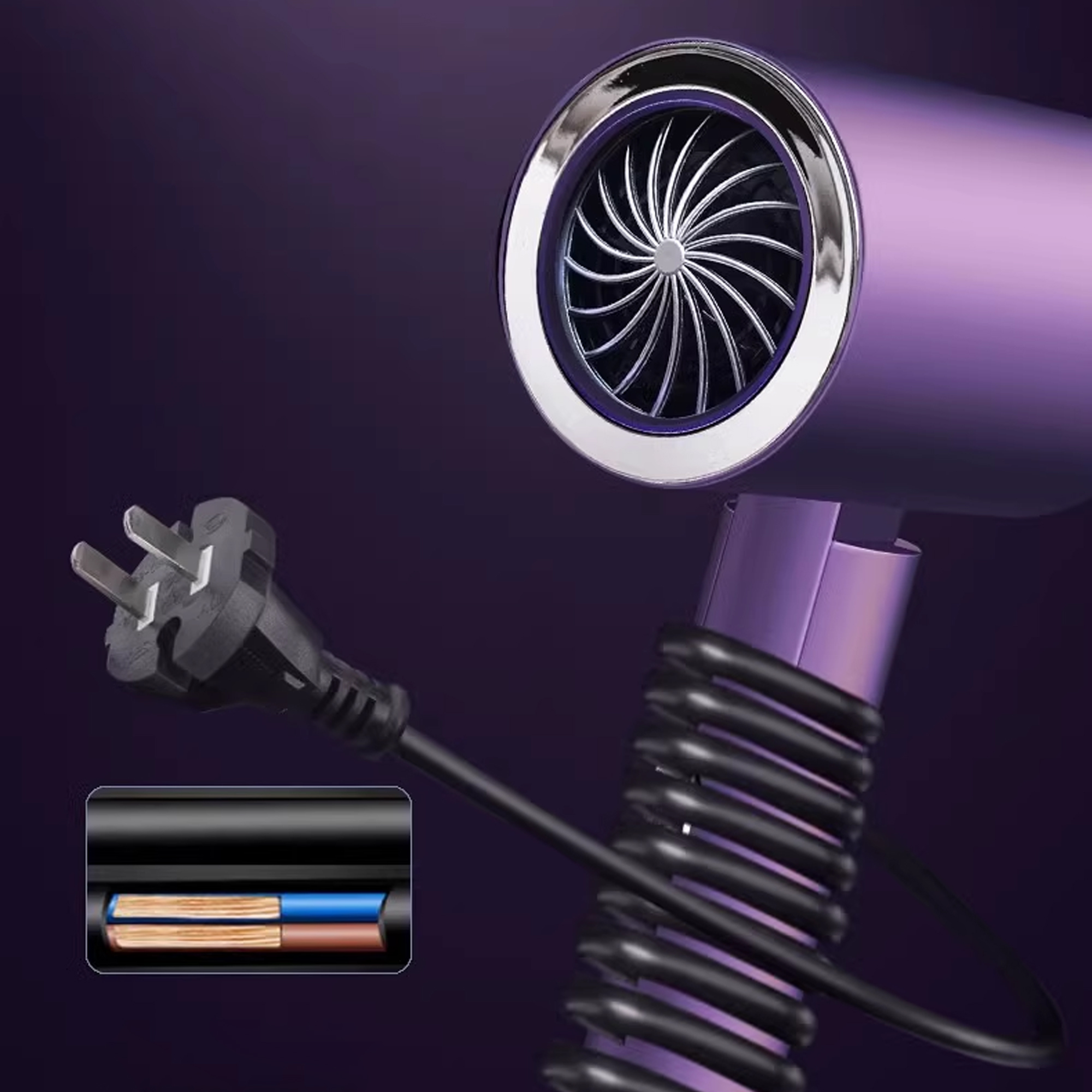 This professional high-speed hair dryer provides various temperature and wind speed modes, hot and cold air, and three wind speeds.